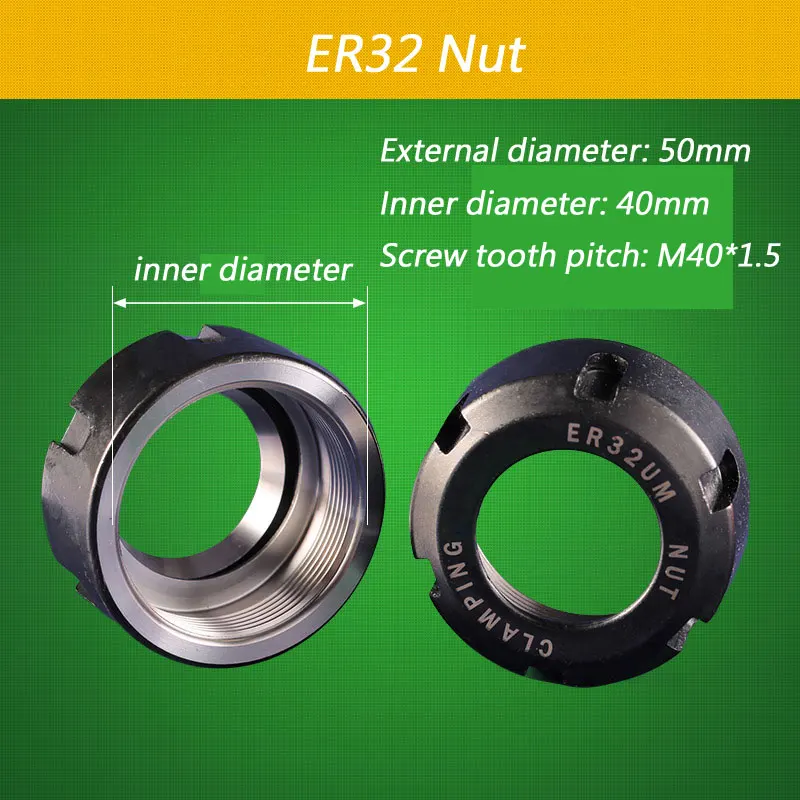 [32857540483] CNC Collet Nut Material:65 Manganese Steel ER32 external diameter: 50mm inner diameter: 40mm screw tooth pitch: M40*1.5 The price is 1 piece. Free shipping. Product Picture